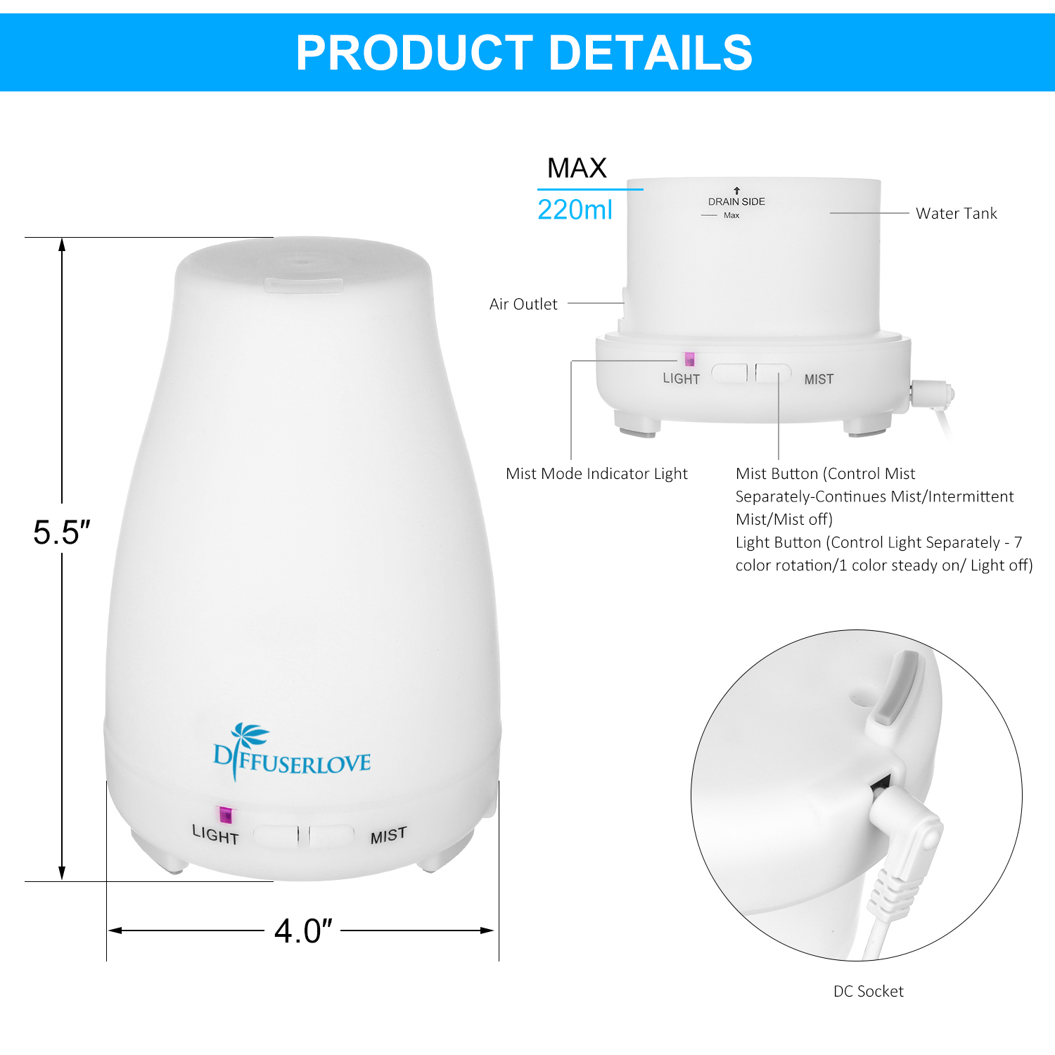 ※The diffuser is made of environment friendly PP + ABS material with natural, protect environment and keep you safe.